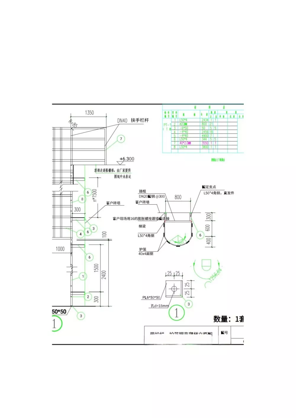 Sisseehitatud osad: Redeli kinnitused tuleb ühendada laienduspoltide (M16 või suuremate) või sisseehitatud terasplaatidega. Sisseehitatud terasplaadi paksus peab olema vähemalt 10 mm, ankruvarda läbimõõt peab olema vähemalt 12 mm ja sisseehitatud sügavus vähemalt 150 mm.